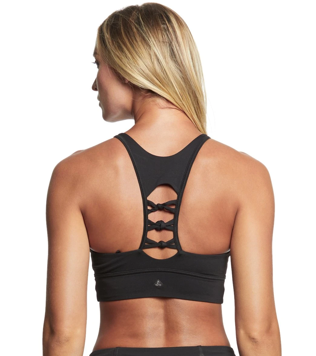 Head to yoga in this stylish Prana Itzel Yoga Sports bra, featuring a strappy, peek-a-boo back with novelty straps for a hint of skin, and a mesh bra liner with molded cups for added support.