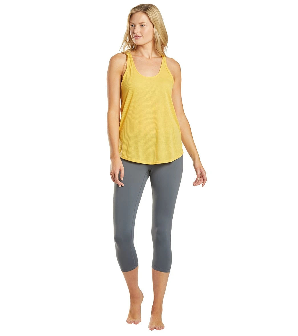 The prAna Kaila Yoga Tank is an easy outfit choice, thanks to its textured fabric, longer length, and classic silhouette.