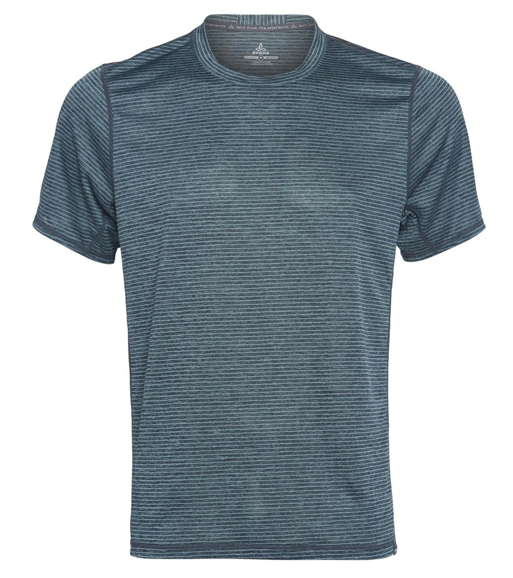 PrAna Men’s Hardesty Short Sleeve Tee Grey Blue Stripe