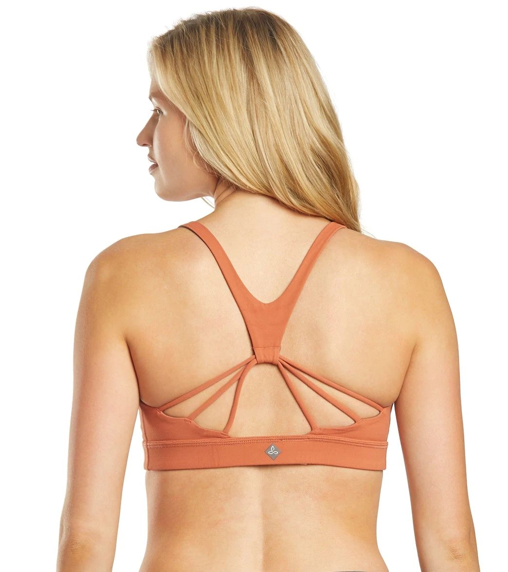 The prAna Momento Yoga Sports Bra features a cute back with lightweight comfort and plenty of support.Â